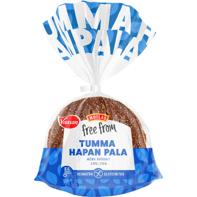 Vesi, tattari (täysjyväjauho, rouhe, raskijauhe), riisi (raskijauhe, täysjyväjauho), perunakuitu, psyllium, melassi, hiiva, rapsiöljy, suola, karamellisiirappi, sakeuttamisaine (E466), säilöntäaine (E200). Saattaa sisältää pieniä määriä gluteenitonta kauraa.